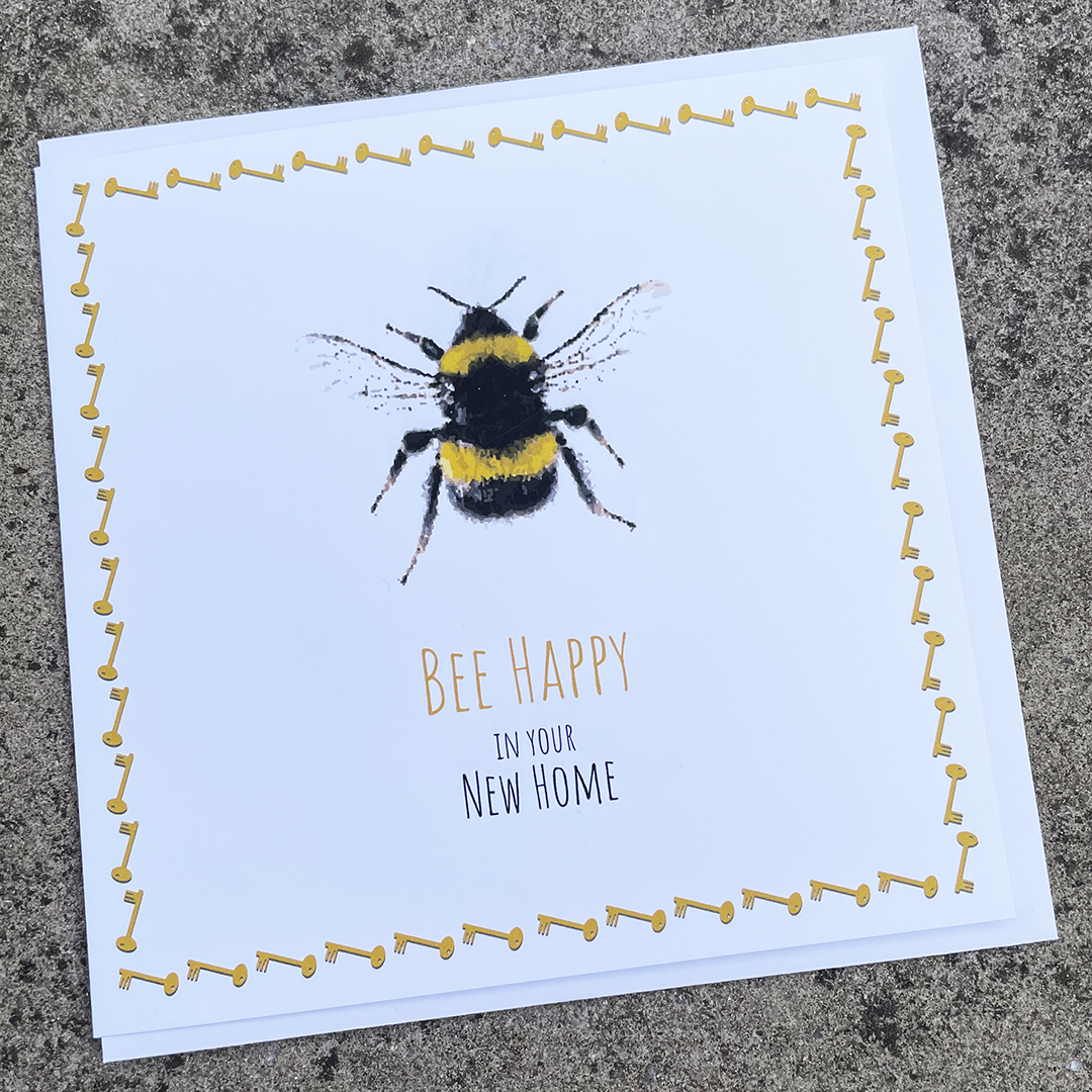 Text on the front reads ‘Bee Happy in your New Home’.